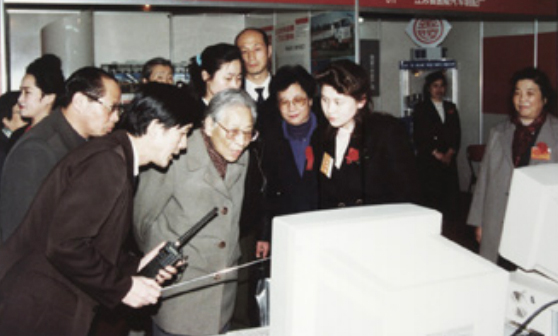1986 年國家領導人參觀華杰公司公路橋梁 CAD 科技成果展臺