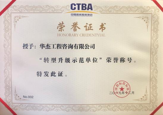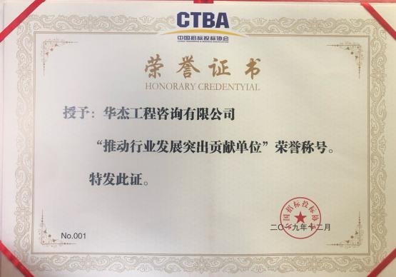 近日,中國招投標(biāo)協(xié)會授予華杰公司“推動行業(yè)發(fā)展突出貢獻(xiàn)單位”、“轉(zhuǎn)型升級示范單位”兩項(xiàng)榮譽(yù)稱號。