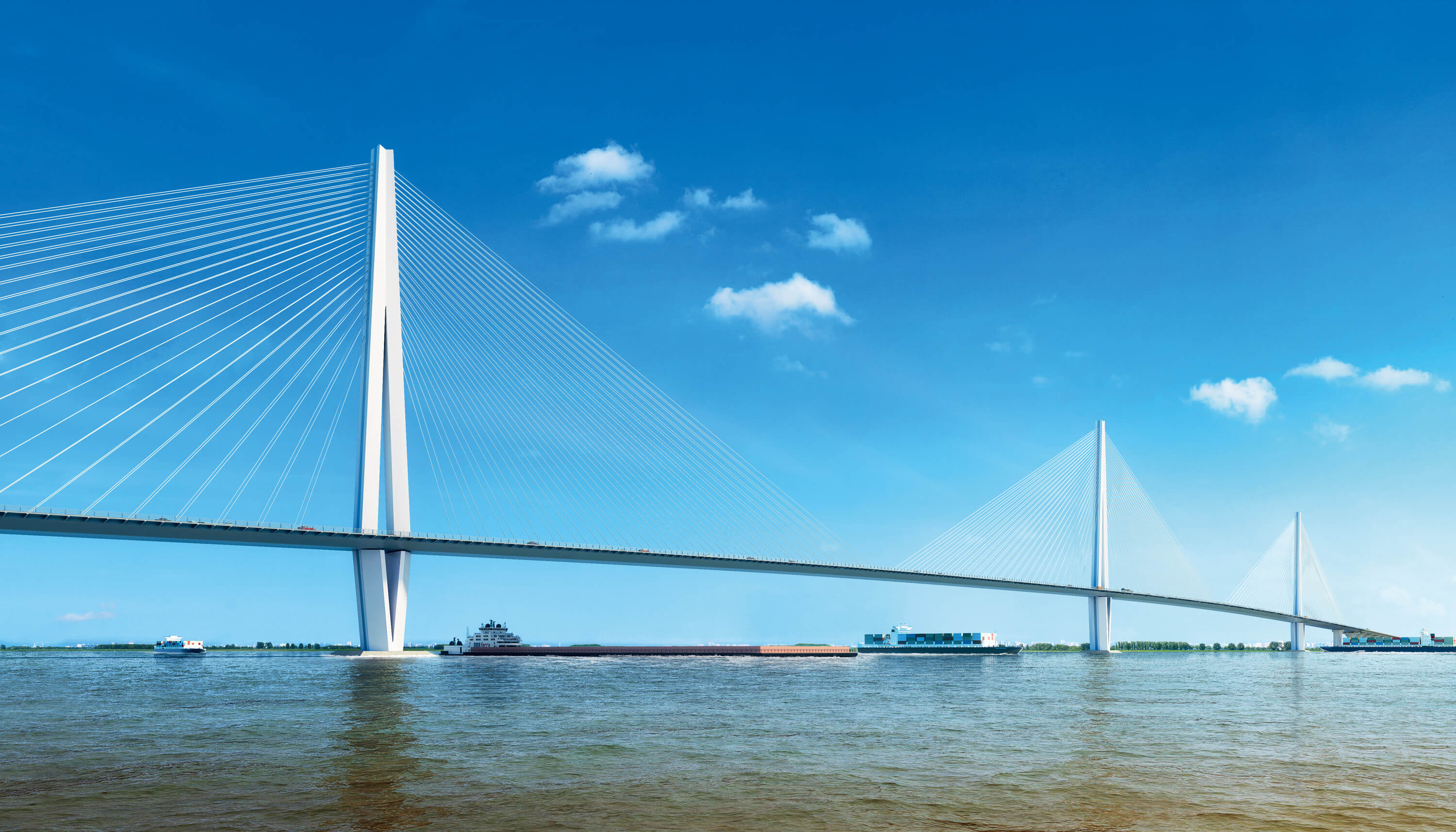南京長江五橋是 205 國道和 312 國道的過江通道,同時(shí)也是南京“高快速路系統(tǒng)”中繞城公路的重要組成部分。項(xiàng)目按雙向六車道一級(jí)公路標(biāo)準(zhǔn)建設(shè),全長約10.33 公里,其中跨長江大橋長約 4.4 公里,夾江隧道長約 1.8 公里,采用三塔兩主跨中央雙索面設(shè)計(jì),主跨跨徑達(dá)到600 米,是世界首座輕型鋼混組合結(jié)構(gòu)斜拉橋。大橋橋跨長、交通量大、互通立交設(shè)計(jì)復(fù)雜,交通安全設(shè)計(jì)極為重要。